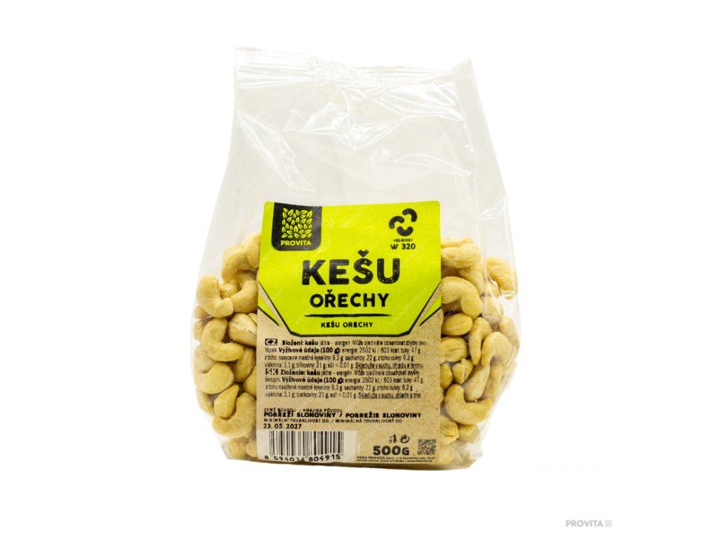 Kešu ořechy celé W 320 500g PROVITA